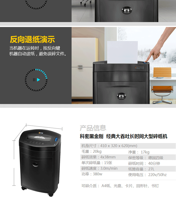 科密KM-1611碎紙機(jī)黑金剛...